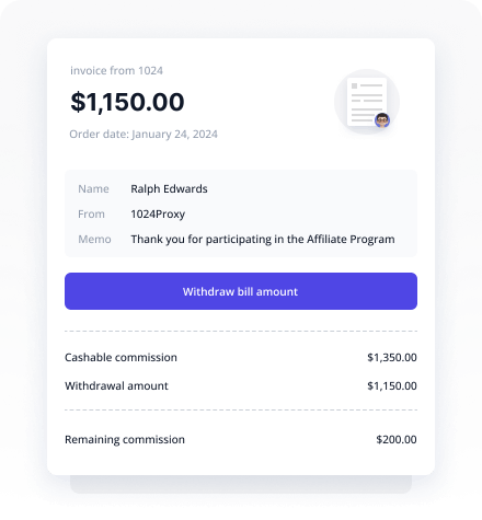 与我们合作,可以获得您邀请加入 1024Proxy 用户首笔订单 10% 的收益。