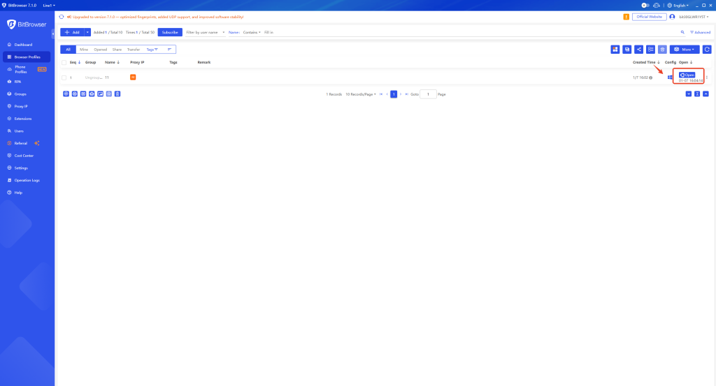 After the configuration is completed, select the configured browser and click “Open” to proceed.