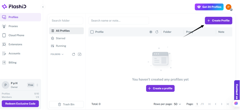 All FlashID browser profiles and cloud phones are completely independent — each with distinct device IDs, storage, and processes. This structure eliminates cross-contamination even for large teams operating multiple accounts simultaneously.