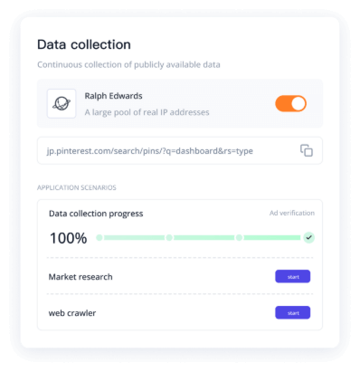 Enable large-scale global data collection through our vast pool of real residential IPs. Designed for web crawling, ad verification, and market research, it delivers precise data.
